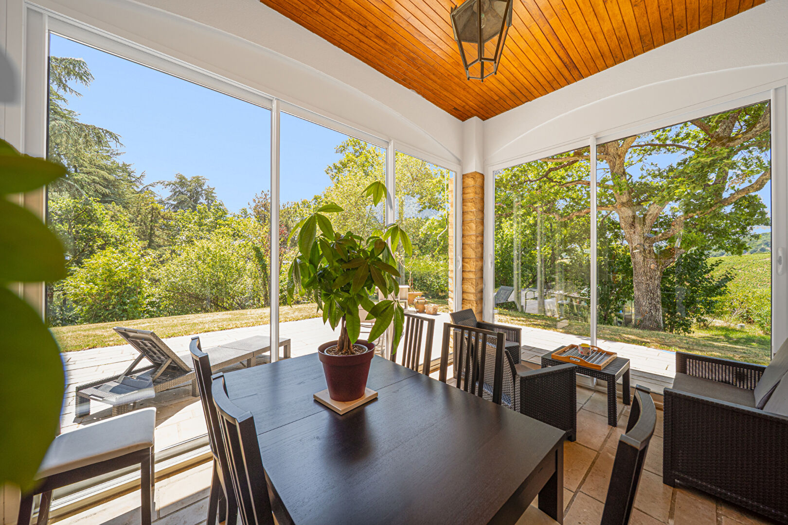 À l'intérieur, vous découvrirez une vaste pièce de vie de 67 m² avec plafond cathédrale, baignée de lumière et ouverte sur une terrasse et un jardin d'hiver, une cuisine entièrement équipée, une suite parentale avec salle de bains, un toilette indépendant, une buanderie et un local technique.