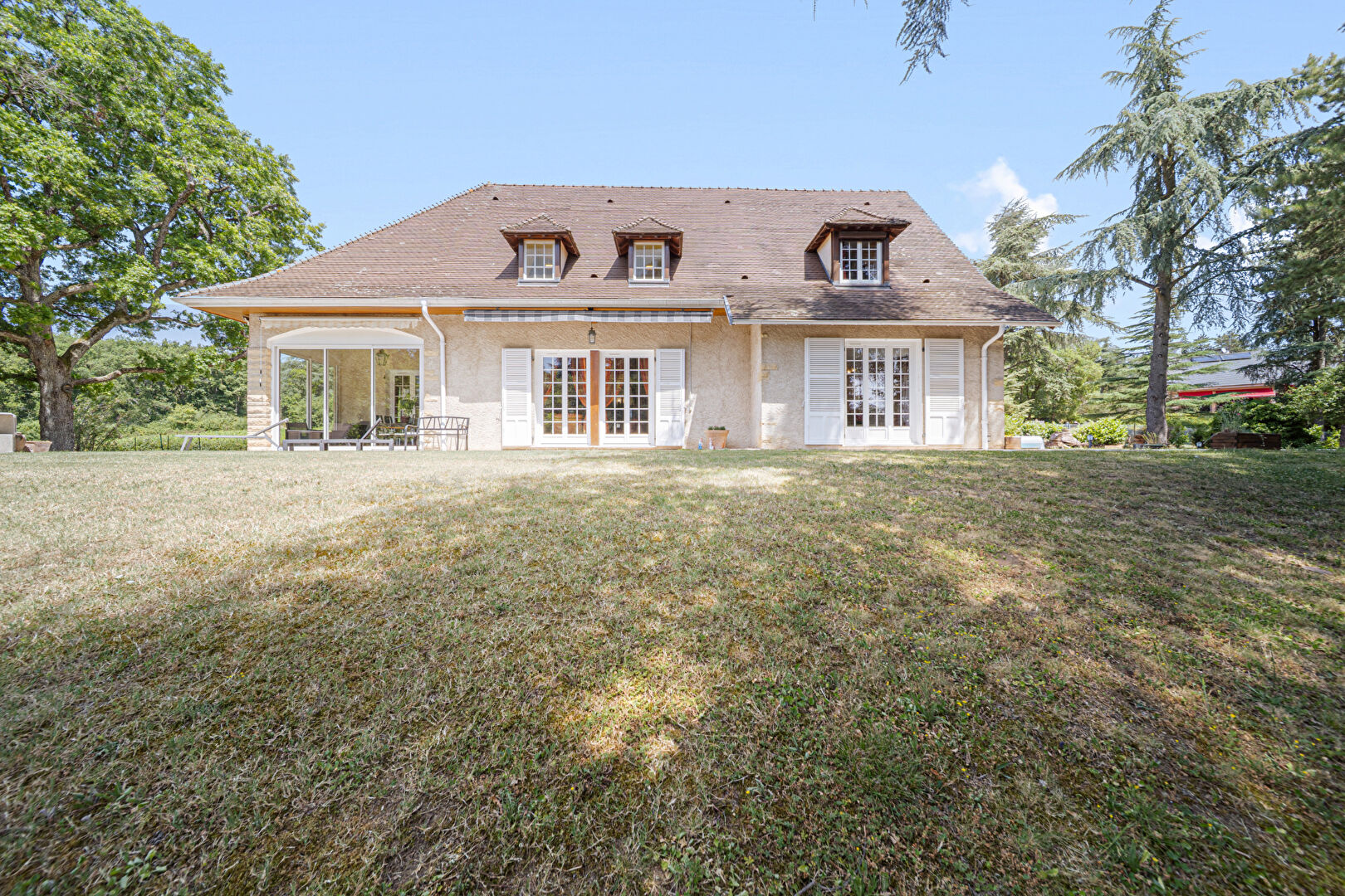 A Givry, au coeur de la côte chalonnaise, Nestenn vous présente cette superbe propriété de 274 m² nichée au sein d'un parc paysager de plus de 6 000 m² avec une vue dégagée sur les vignobles environnants.