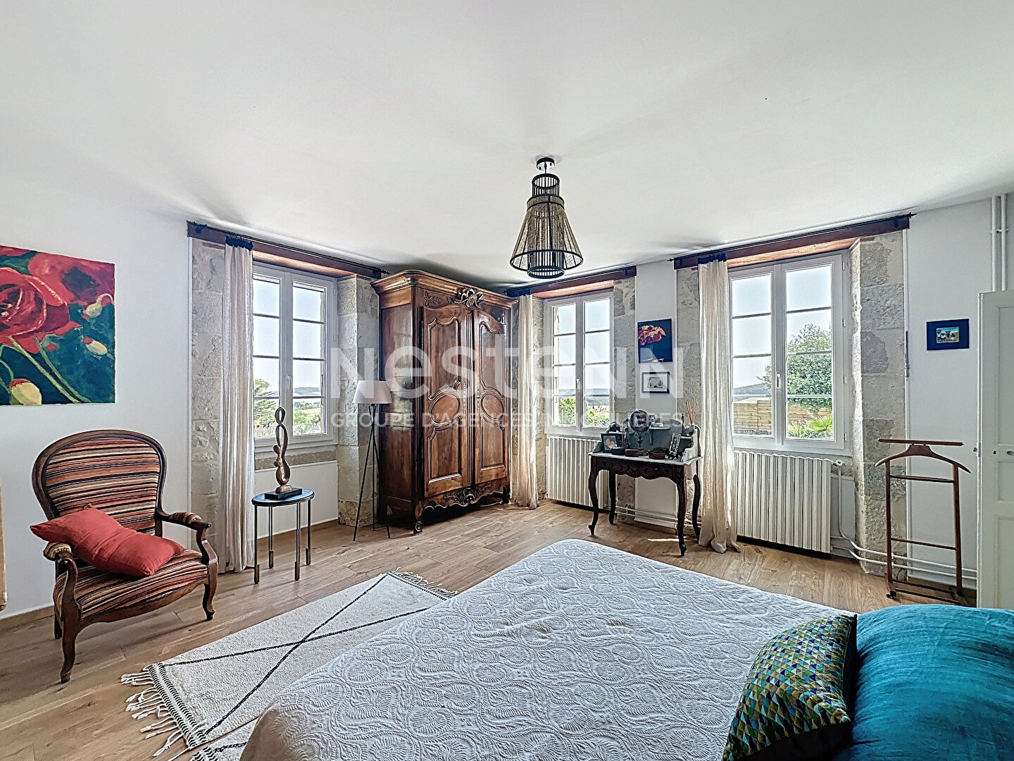 Dès l'entrée, vous serez séduits par la majesté des volumes et la qualité de la rénovation. Le salon principal de plus de 100 m², baigné de lumière, s'ouvre sur un magnifique parc paysager avec une vue panoramique dégagée sur la campagne gersoise. La demeure offre une distribution fluide et fonctionnelle : une chambre en rez-de-chaussée avec salle de bain garantit une accessibilité optimale. À l'étage, deux chambres supplémentaires, confortables et lumineuses, complètent l'espace nuit.