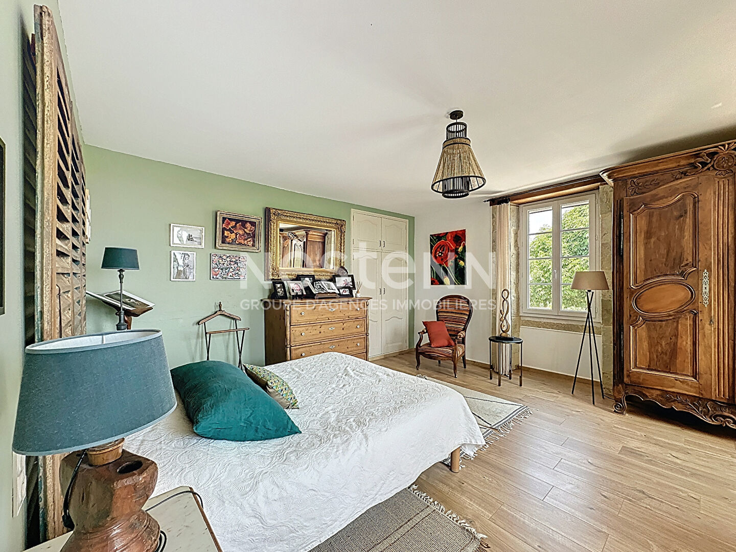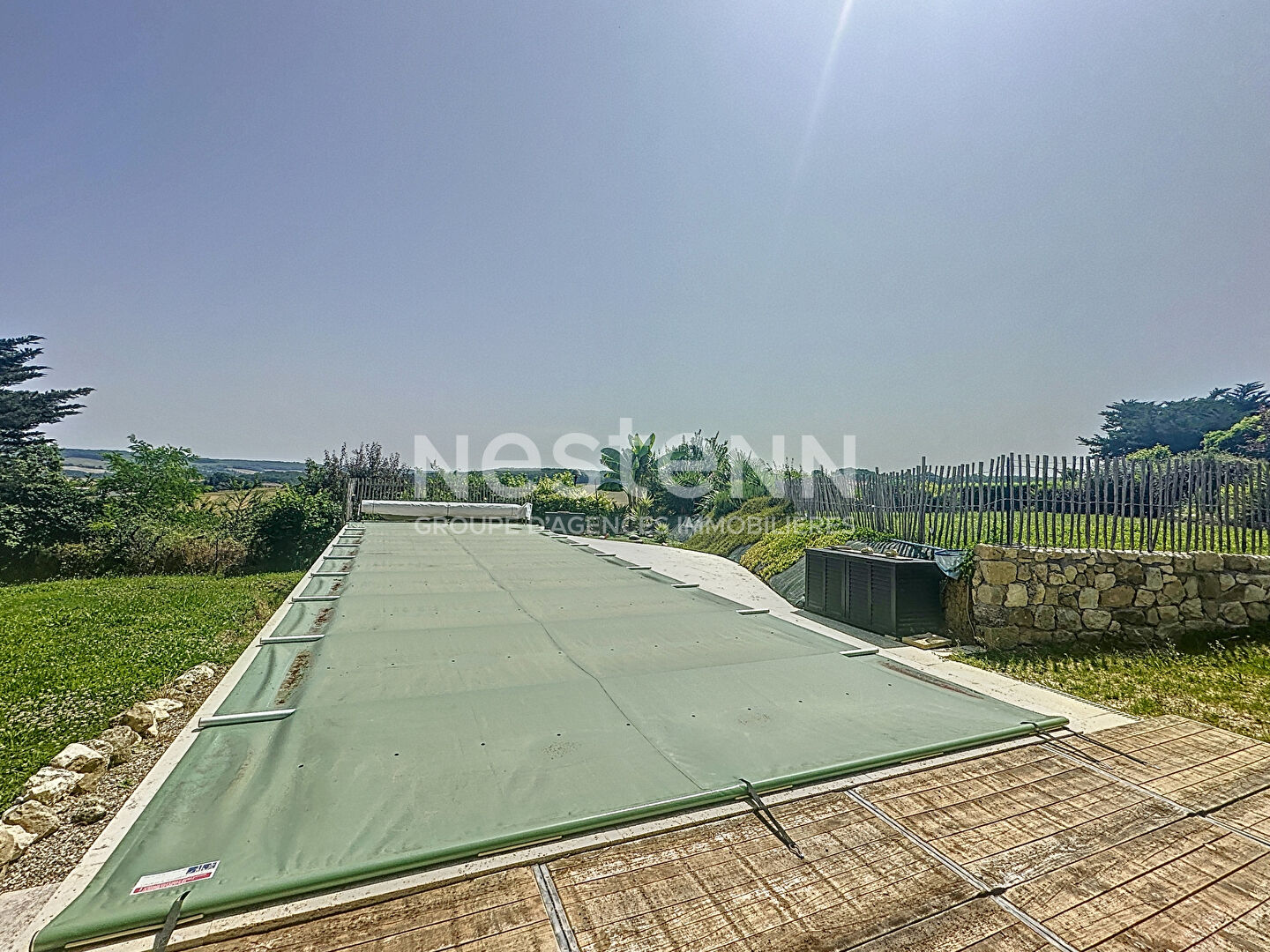À l'extérieur, la propriété s'étend sur un terrain arboré magnifiquement entretenu, agrémenté d'une piscine élégante parfaitement intégrée dans le paysage.