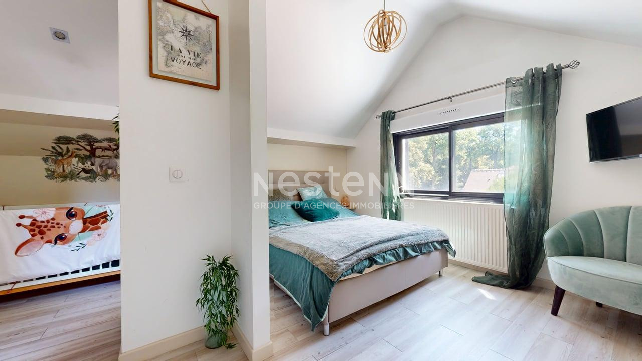 L'étage se compose de deux chambres lumineuses, d'un bureau pouvant servir de chambre d'appoint, ainsi que d'une salle d'eau avec WC.