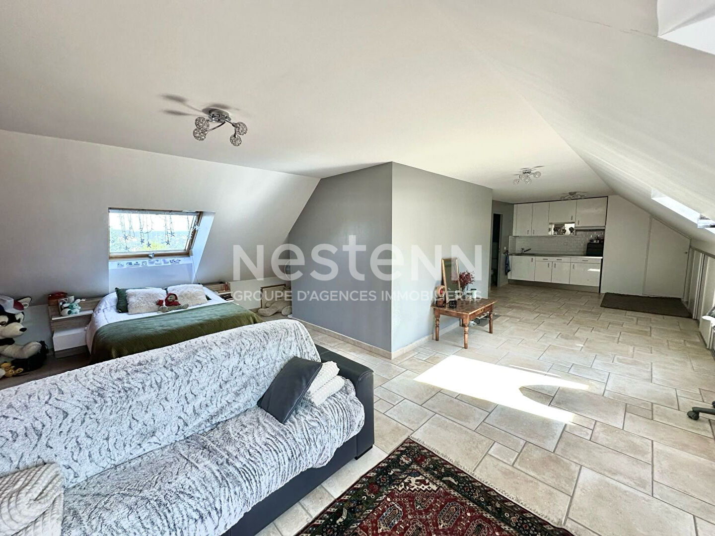 La cuisine, aménagée et équipée avec des matériaux de qualité, peut être ouverte sur la salle à manger ou fermée selon les besoins. Ce niveau comprend également une salle d'eau, des toilettes séparées et une pièce de plus de 12 m² pouvant faire office de bureau ou de chambre.